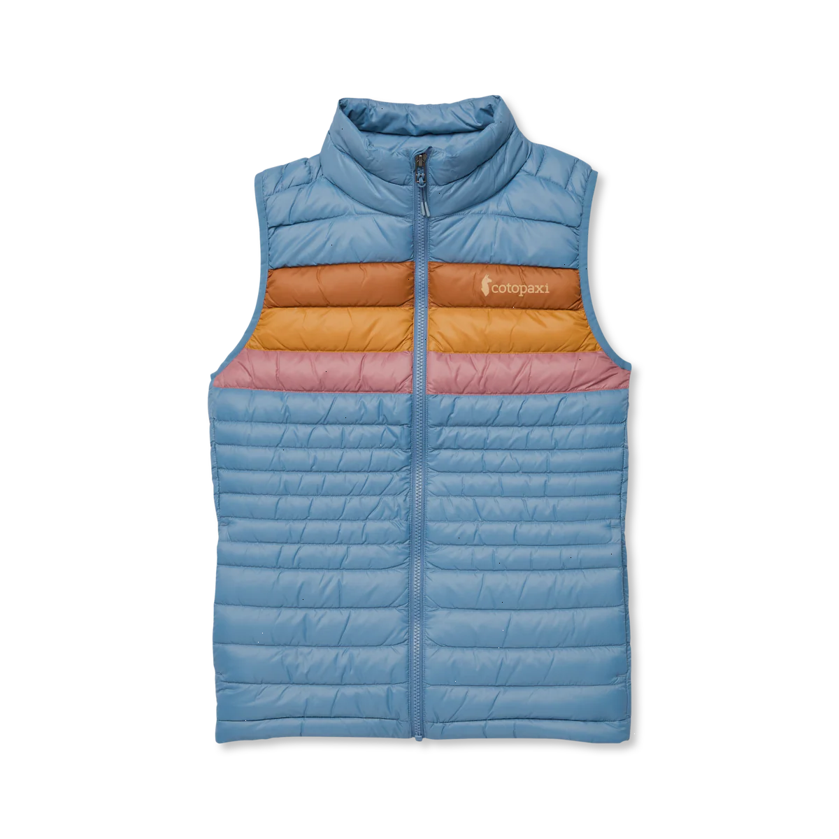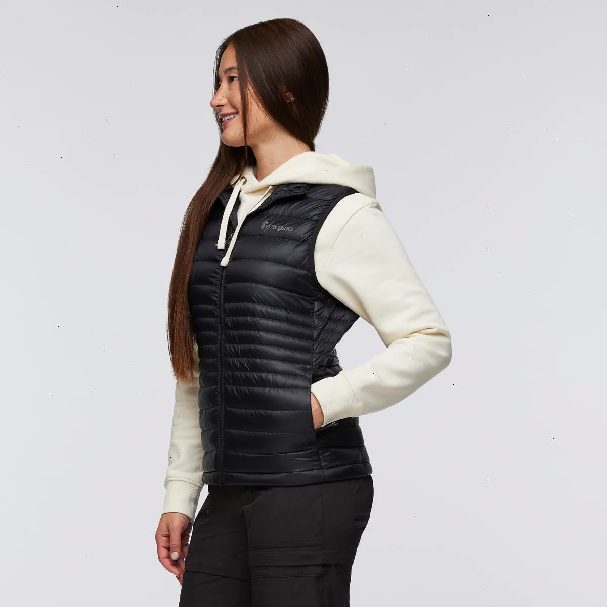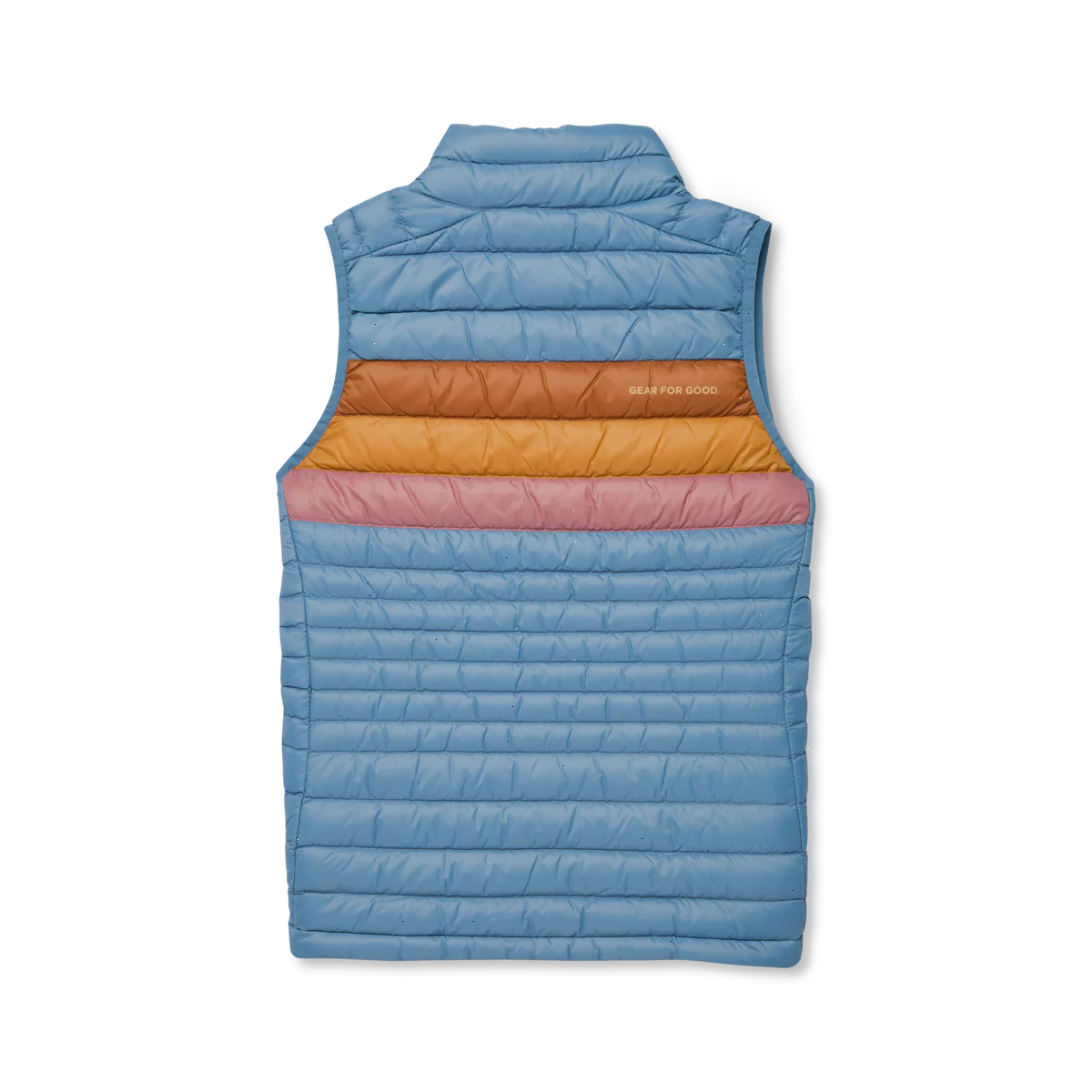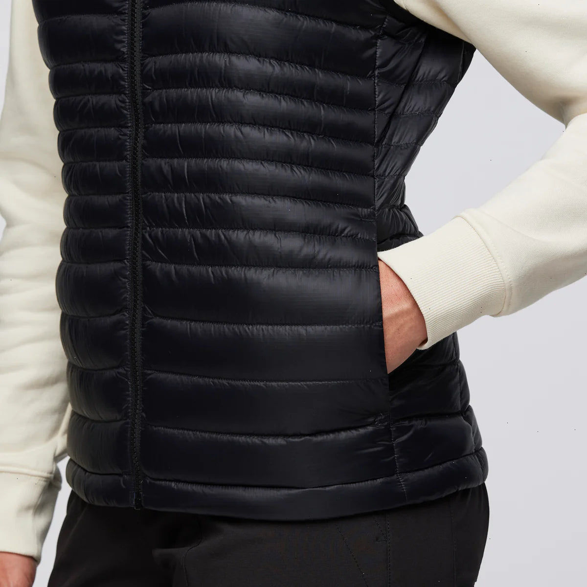 A classic down vest made from recycled fabric with year-round versatility