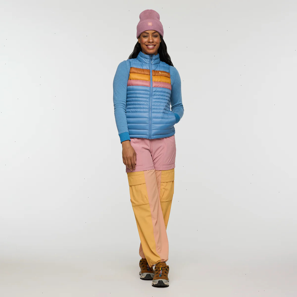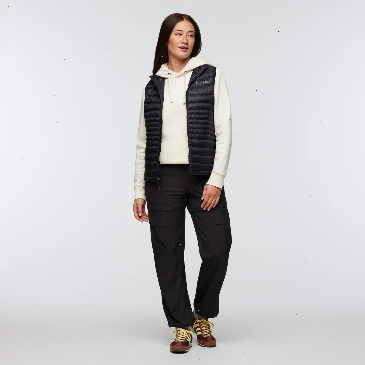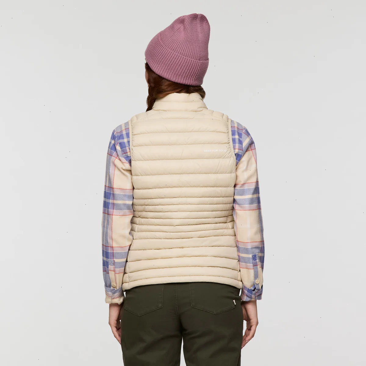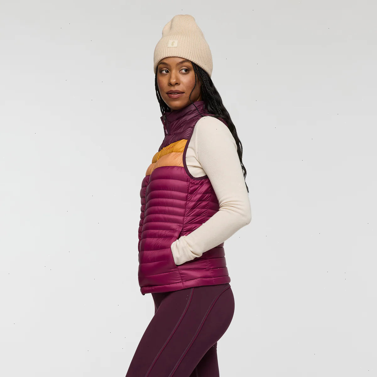A classic down vest made from recycled fabric with year-round versatility